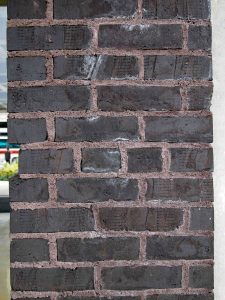 第2研究棟とセンタービルディングには、イギリスのイブストック社のレンガがふんだんに使用された建築でした。近くで見ると朱泥(シュデイ)色の目地で、黒色のレンガとマッチした施工がなされていました。